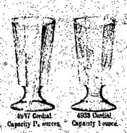 NOTE: Sid Lethbridge 2021: [The catalog images are] U. S. Glass Co. Nos. 4937 and 4938 and originated at Central Glass as their No. 450 cordial and sherry respectively. The difference is the plunger shape - 4937 cones down to a well rounded interior base and 4938 is a truncated cone with an essentially flat interior base.