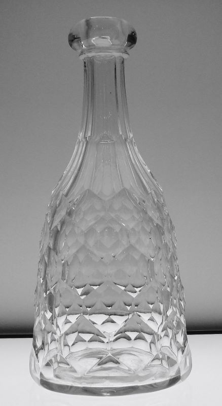 Contributor: Sid Lethbridge 10.25H flint quart bar decanter per catalog. cut shut with grinding and polishing to remove cut shut scar.