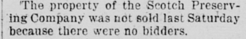 NOTE: Sid Lethbridge 2021 - The Scotch Preserving Co. was registered March 20, 1893 in Bellaire, OH as a manufacturer of preserves, jellies, mincemeat, etc. It appears they were out of business by 1896 as the property was up for sale.