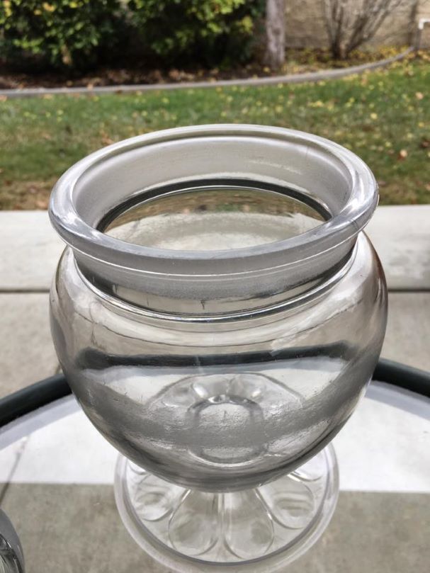 Contributor: Liz Roach 11H including lid. ground rim for stopper, also ground. Footed Tablet Jar, per catalog