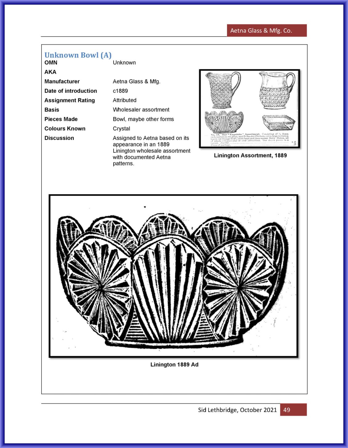 AETNA GLASS & MANUFACTURING CO. UNNAMED PATTERN No. 3 (AKA)