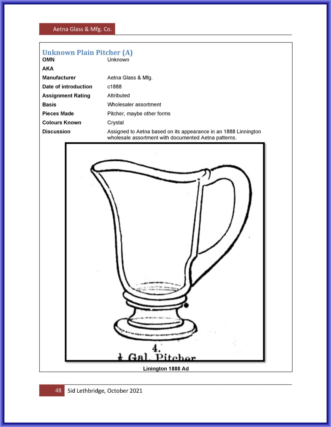 AETNA GLASS & MANUFACTURING CO. UNNAMED PATTERN No. 4 (AKA) by Aetna Glass & Manufacturing Company/Bellaire-Ohio (Company Operated: 1880-1890), c1888 Introduced