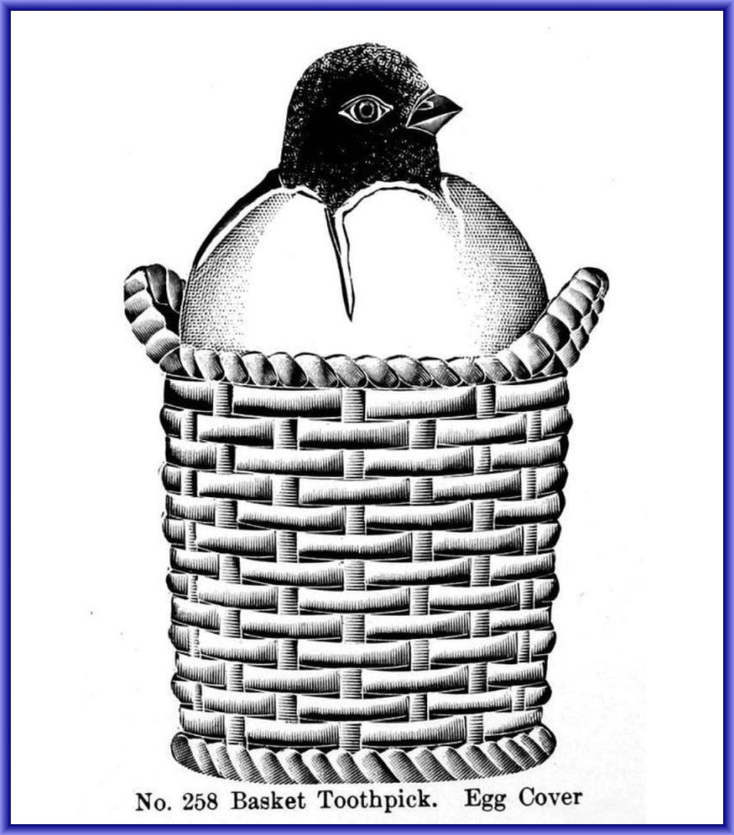 WESTMORELAND SPECIALTY CO. No. 258 BASKET TOOTHPICK WITH EGG COVER (OMN)