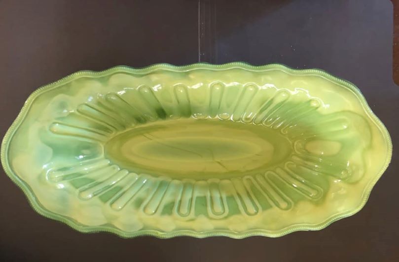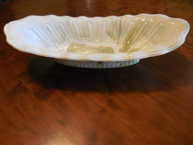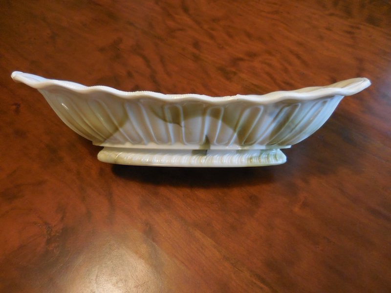 Contributor: Liz Tuohy-Sheen Note this is MG; Top/lip outer dimensions are 13 1/4" x 6 1/4", base is 7 1/2" x 2 1/2", 3" high at the lip's highest point.