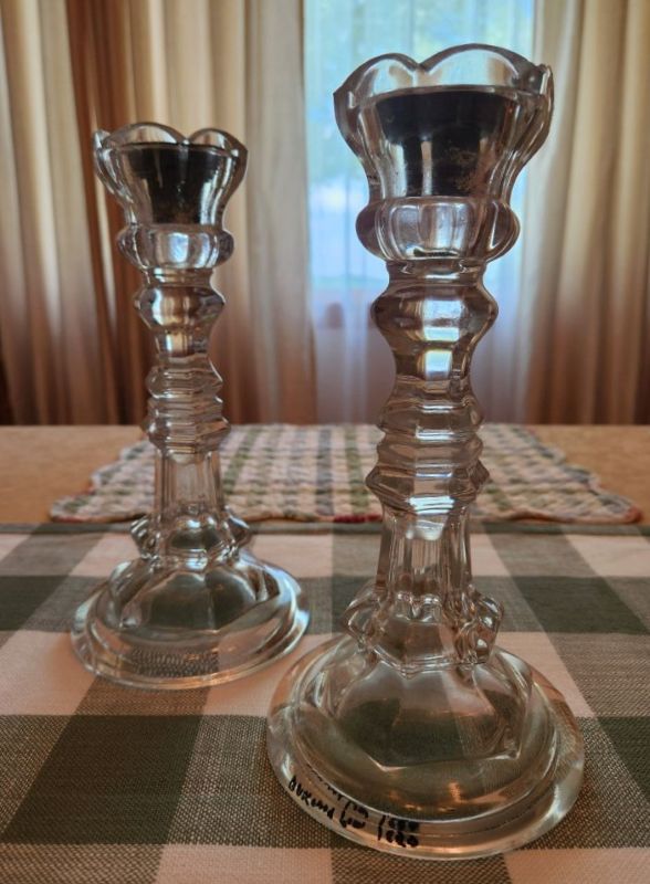 THISTLE CANDLESTICKS (OMN) by Bakewell, Pears & Company/Pittsburgh-PA (Company Operated: 1807-1882), c1860s Introduced