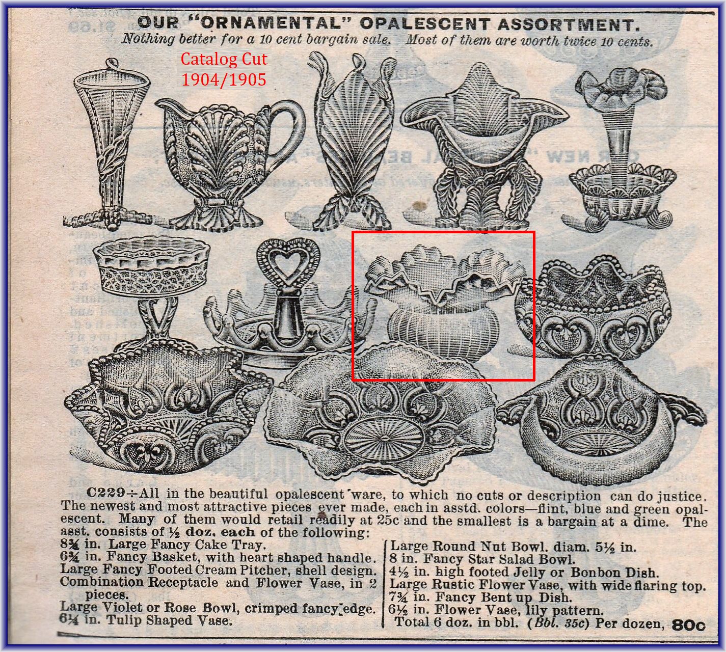 NOTE: Pattern was also produced with an iridized (carnival glass) finish.