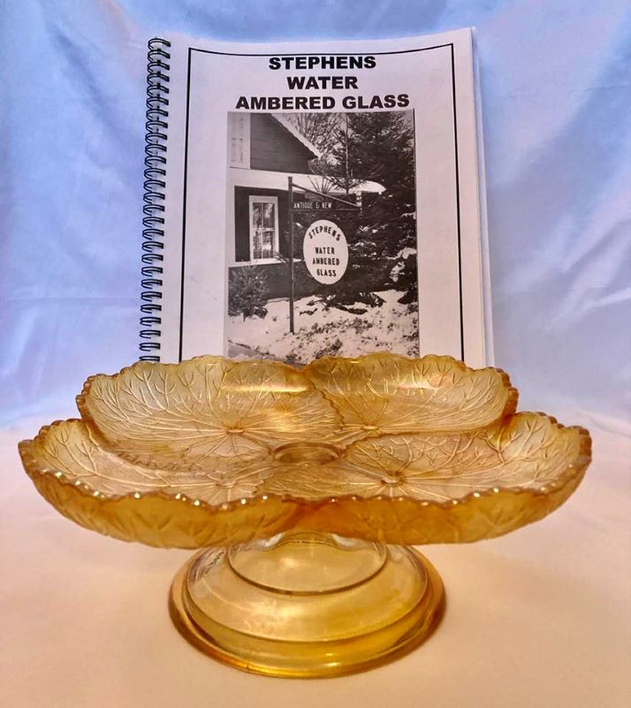 Contributor: Robin Fisher Cisne water-ambered cake stand. Clear glass steeped in iron-rich spring water in the 20th C. NOT original amber, NOT amber made by company
