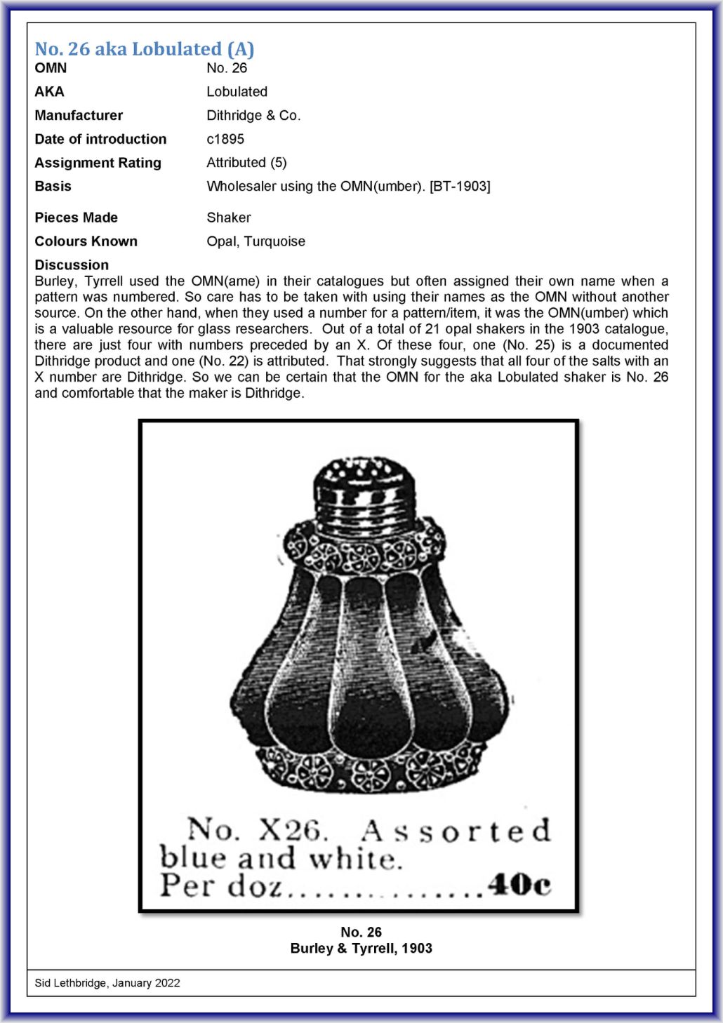DITHRIDGE & CO. No. 26 (OMN) by Dithridge & Company/Pittsburgh-PA/Jeannette-PA (Company operated 1861 - 1901), c1895 Introduced