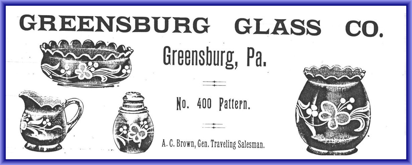 NOTE: Sid Lethbridge - No. 400 (OMN) was introduced in 1895 by the Greensburg Glass Co. LTD. This line was moved by National to their McKee Works (also as No. 400)