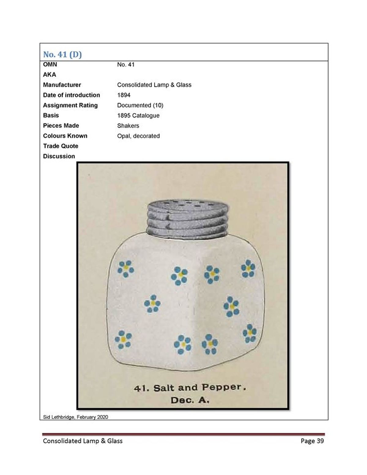 CONSOLIDATED LAMP & GLASS CO. No. 41 (OMN) by Consolidated Lamp & Glass Co/Fostoria-Ohio/Coraopolis-PA(Operated 1893-1964), 1894 Introduced