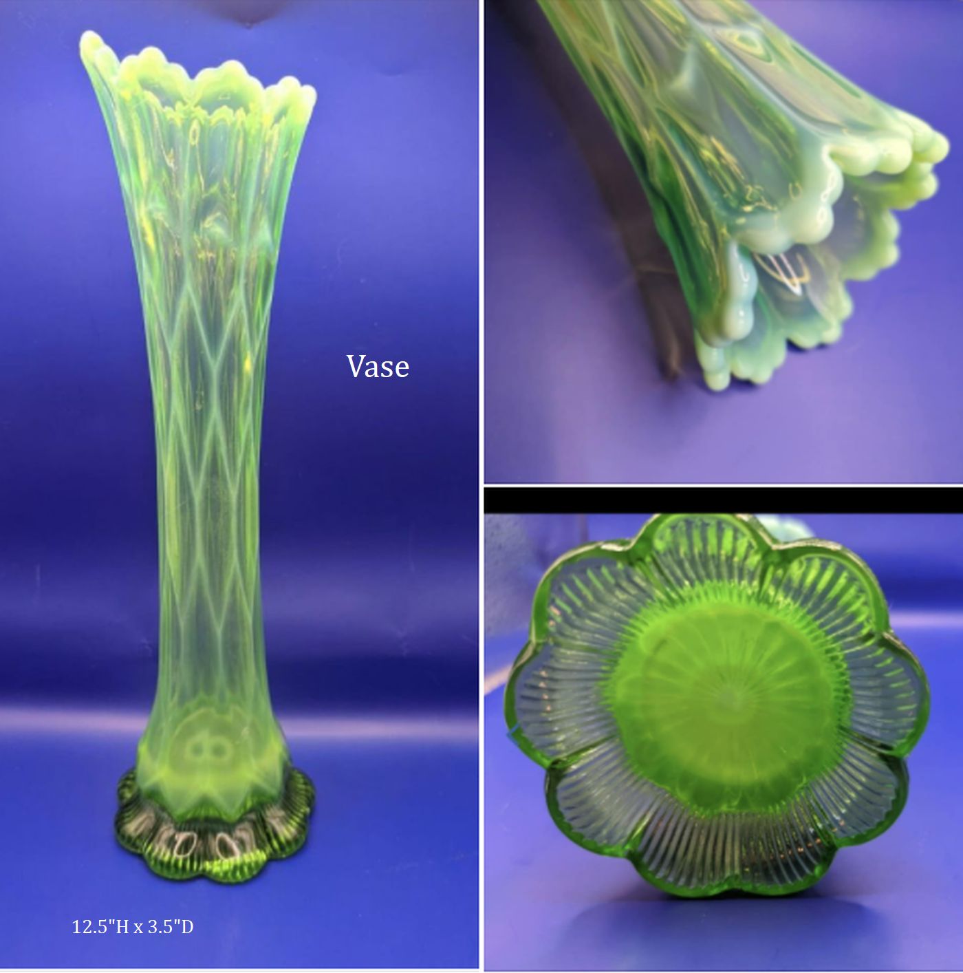 NOTE: Terry Wells - Opalescent Glass from A-Z rev. ed (2000) p. 68, William Heacock, originally attributed this pattern to the West VA Company Hobbs, Brockunier. However, the editor, JoAnn Elmore, who revised Heacock's works, notes that the pattern may have been made by another company, possibly Phoenix, Northwood, Dugan or even a British glass works.