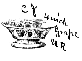 NOTE: Sid Lethbridge 2022: cut of the Grape (OMN) 4" footed sauce dating to c1877. This cut appears in the 1877/78 F H Lovell catalogue. This shape was used for several other patterns made by Campbell, Jones