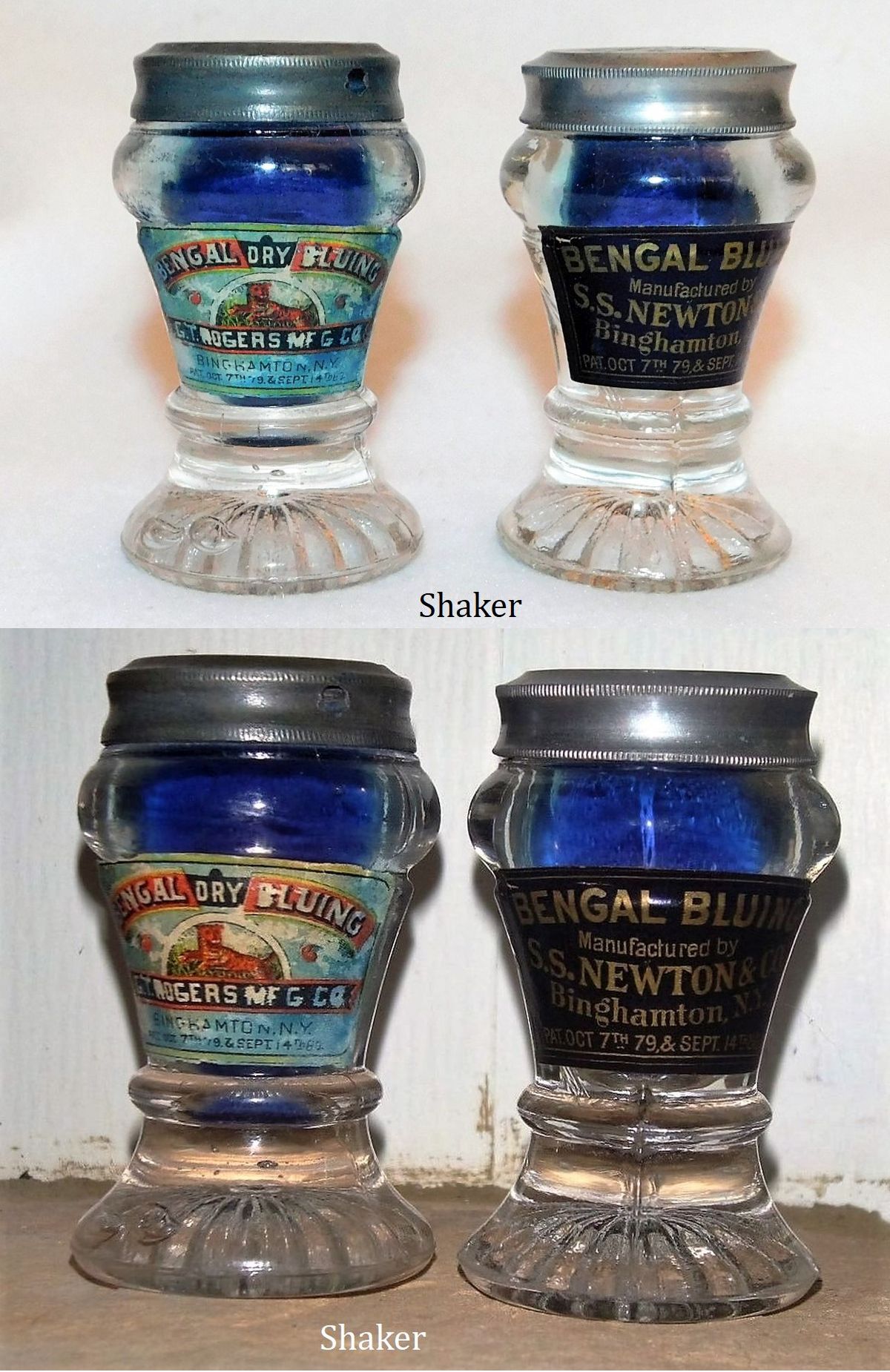 NOTE: Ref. Glass Salt Shakers, Arthur G. Peterson, p42, 56. Patented by S. S. Newton in 1880 for packaging bluing or other powdered product.