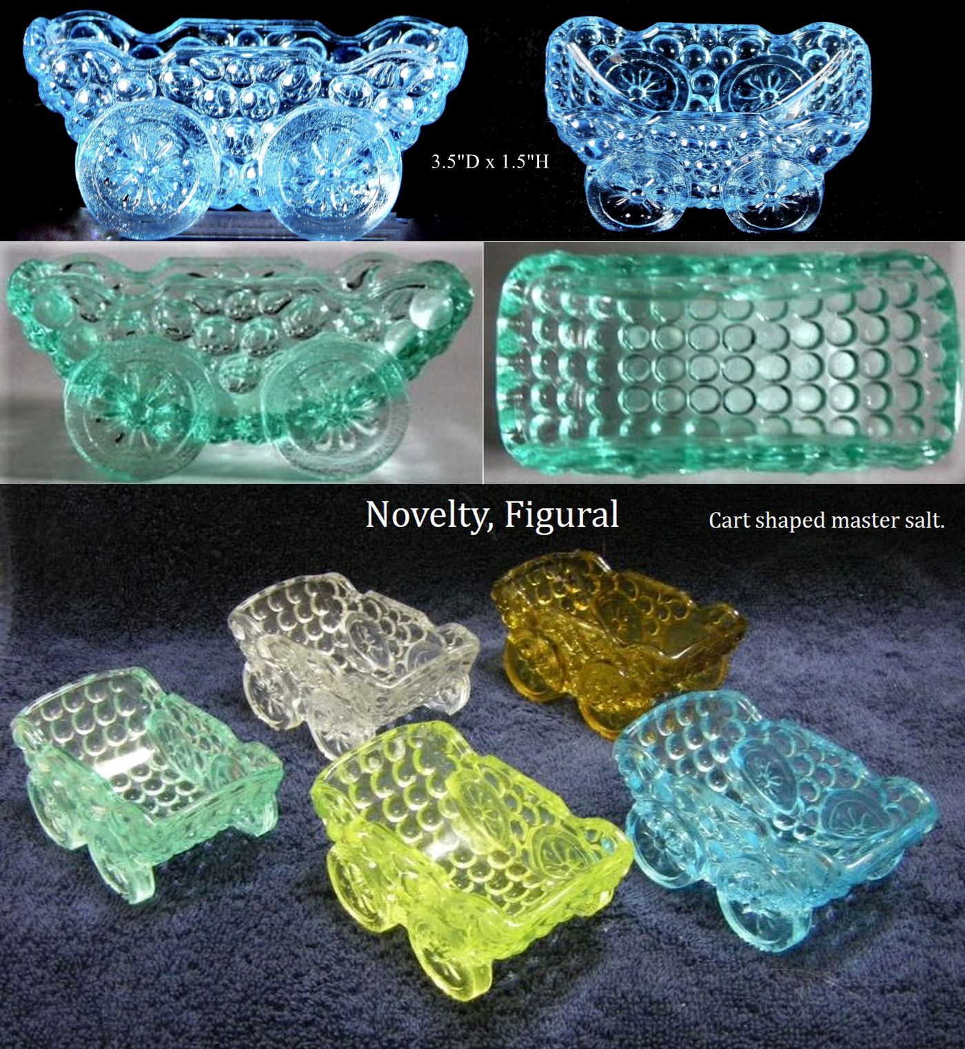Contributor: Lynda LaLonde, Carole Linxwiler Bruce. According to Jenks-Luna, the large ones are "carriage shaped bowl" and smaller are "cart shaped mater salt".