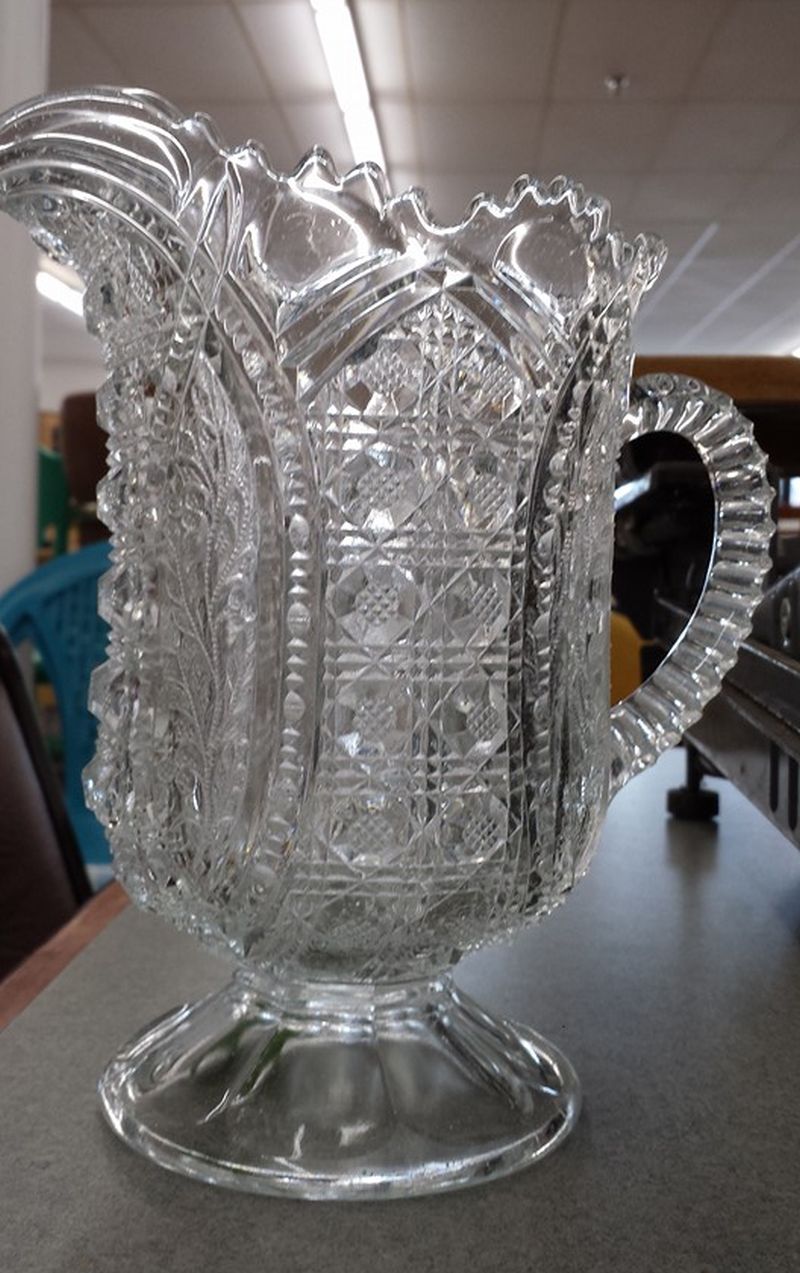 Contributor: Winfred Huff 4.75"H 3 3/8"rim D 5.5"spout/handle