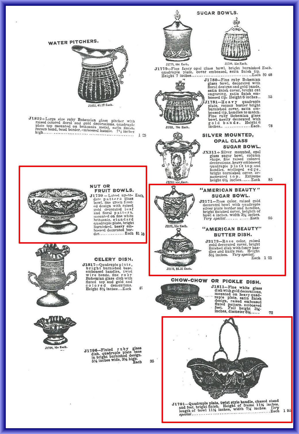 Contributor: Karen Welch - February 1900 issue of House Furnishing Review. American Beauty was the name for the rose stain with gold decoration.