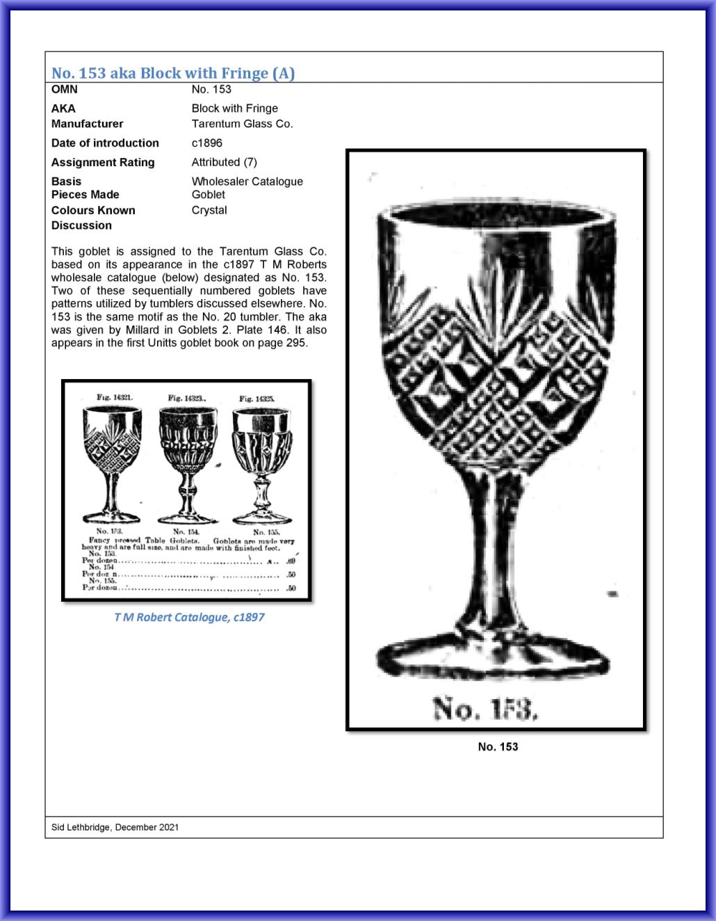 TARENTUM GLASS CO. No. 153 (OMN) by Tarentum Glass Company/Tarentum-PA (Company Operated: 1894-1918), c1896 Introduced