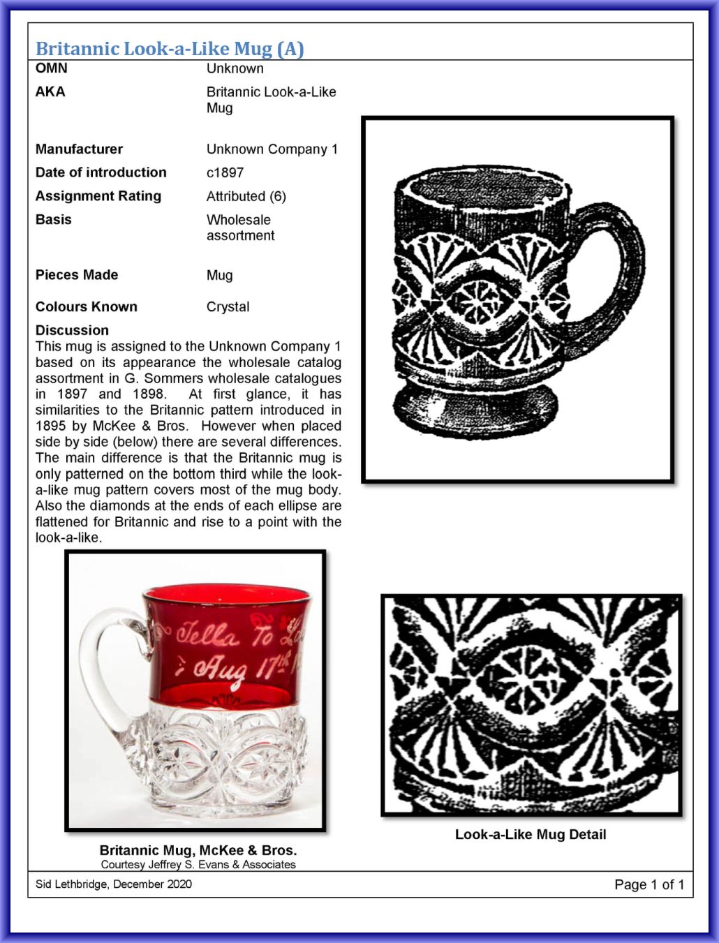 BRITANNIC LOOK-ALIKE MUG (AKA) by Unknown Glass Company No. 1/Unknown Location (Company Operated: Unknown), c1897 Introduced