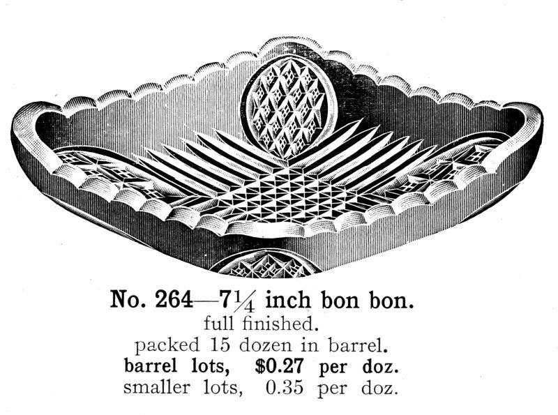 NOTE: Sid Lethbridge 2022: No. 264 7-1/4" bon bon introduced in 1904. The image is from the 1909 Imperial catalogue but it appears in the 1904 price list. No other items in this pattern appear in the price lists.