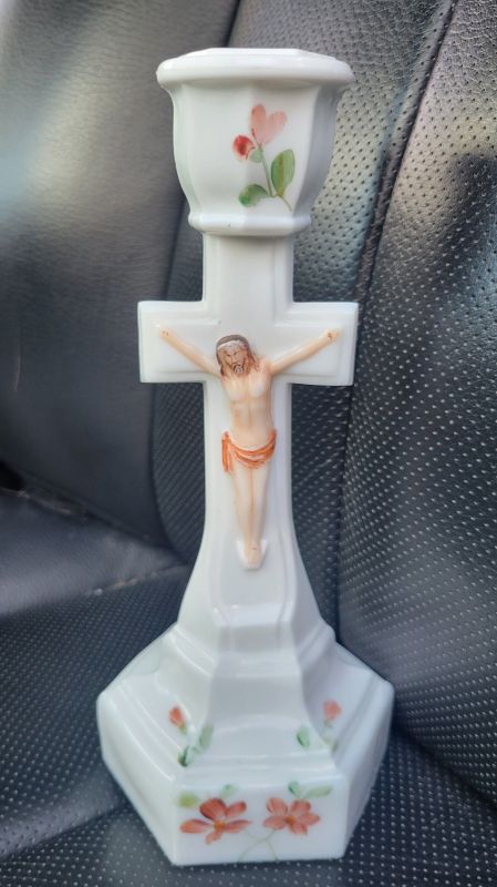 Contributor: Russell Crupe 2-26-26 - later version after the INRI was removed. Per Paul Kirk Jr, hand-painted decoration is very typical of the late 1890s-early 1900s.