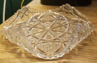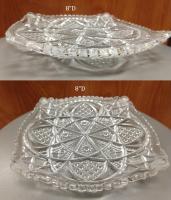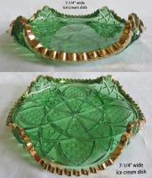 • NOTE: Sid Lethbridge: Many forms have the "uppy" peaks. The bowls and comports can have all four "uppy", all four "outy" or two up and two out. The bowls with all four up were called "round", all four out called "scalloped", and the bowls with two up and two out were called "nut bowls". There is another version with all four out but crimped in a bit that was called "crimped".