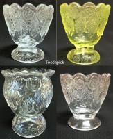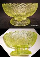 NOTE: Was made in vaseline, clear, amber and blue opalescence; 5 pieces also known in chocolate glass.