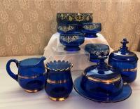 • NOTE: King brought this pattern out in 1890/1 and it was continued by US Glass. The Dewey blue was introduced in 1898 and is often found decorated with cupids in white or yellow enamel.