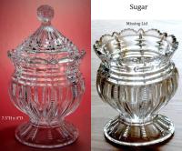 Produced by New Martinsville Glass Mfg. Co., c1921 (celery vase, ice tub, mug, family shaker, and sugar duster)