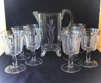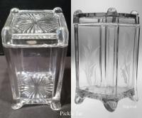 • NOTE: Regarding tray/dish handles... According to a contemporary trade quote the words are Greek. Spillman provided the translation which is "Give Us This Day Our Daily Bread". Ref: "Adams & Co., A Closer Look", Glass Club Bulletin No. 163.