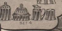 NOTE: James Measell: Depicted in an ad dated 7/9/1903. It's part of the 253 four-piece table set, but the covered sugar and the spoon do not have the metal part and are just like most EAPG covered sugars and spoons. The item in question is the 253 "separating covered creamer."