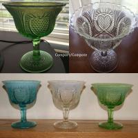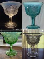 • NOTE: Sid Lethbridge: The only documented maker is Dominion Glass (catalog) with the pattern No. 275. That would place it after 1913 for production in Canada. However, Heacock speculated that it was first introduced by Jefferson in Follansbee around 1907-10 based on the pattern number and the opalescent jelly comports that are known. I suspect that Heacock was right.