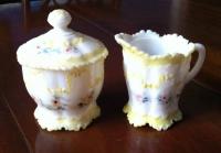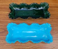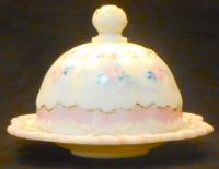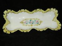 Regards the bright orange plate/platter: production of Versailles, particularly in this orange colour, was continued by Pittsburgh Lamp, Brass, and Glass Co ("Pilabrasgo") after they acquired Dithridge in 1901. Sid Lethbridge The maker of this piece is not definitively known but in this color is "most certainly Nicholas Kopp but we can only guess when--Kopp Glass Co-1900, Pilabrasgo 1901-?" My guess is "Pilabrasgo as that same color can be found on Dithridge pieces that probably ended up at Pilabrasgo after the merger"--Brad Gougeon.