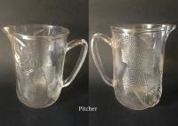 • NOTE: Brad Gougeon - Shown in the 1881 Atterbury catalog. "Pint Fish Pitcher" with and without decoration. This is the smaller of two pitchers of this design. There is also a three pint size.