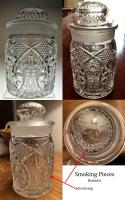 • NOTE: Regarding photos of Tobacco Jar: The McKee Glass Co. removed a hobstar from the base and embossed the factory information in its place. "FACTORY NO 304 1ST DIST. MO. 50. The F.R. Rice Mercantile Cigar Co. was located at 305 North 4th Street, St. Louis, MO. The lid is also different to fit the advertising on the top but with the same pattern on the neck.