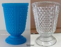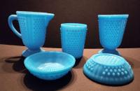 • Canton's Lustre, introduced in opal (milk glass) in 1892. The blue opaque was probably later. Also made in clear, blue, and amber. Plate molds (and possibly others) ended up at the new Cambridge plant and are shown in the 1903 Cambridge catalog.