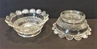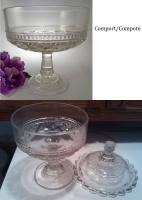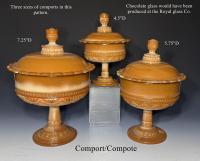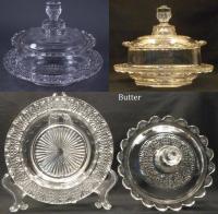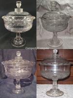 • NOTE: Roger Haworth: introduced by Brilliant in 1888. That factory moved and morphed into Greensburg. When that company had financial problems, they sold equipment and moulds to Huntington. From there, at least some of the moulds went to Royal, who made compotes, sauce dishes, and a plate in chocolate glass around 1901 -- unknown whether they made any of the rest of the line in clear. The Welkers put it at McKee because of the chocolate production but we now know that was done at Royal, so we can probably cross them off the list. Items show up in Butler Brothers assortments as late as 1915, apparently from old moulds that went through National's system somewhere along the line.