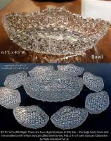 • NOTE: Sid Lethbridge: There are several atypical pieces in this line - the berry set large and small nappies and the smaller bowls which Duncan called olive bowls. Ref. p 87 of Early Duncan Glassware by Neila Bredehoft et al.