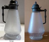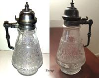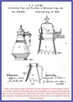 • NOTE: Sid Lethbridge - A patent for a specific method of connecting a handle and pouring nozzle to a molasses can (now called syrups) was issued to Augustus A. Adams in August 1879. The patent drawings incorporate drawings with a very distinctive lid/handle combination which is seen on the example posted here. So we know that this is a product of Adams & Co. and a general time frame of 1879 or after. What we don't know is what they called it. We also know that other molasses can (or syrup) with that lid is also by Adams & Co.