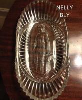 NOTE: Sid Lethbridge: “patent for the Design was issued in April 1890 to William Walter who assigned it to the Thompson Glass Co.” there was a trade report on Apr 3, 1890, re the Nellie Bly plate, for which the company had high hopes.