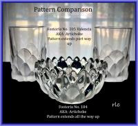 • NOTE: FOSTORIA GLASS CO. No. .184 (OMN), one of two patterns aka Artichoke. The other is FOSTORIA GLASS CO. No. .205 VALENCIA (OMN). The main difference is that #184 has the “petals” going all the way to the top. Valencia has the petals that end well below the top.