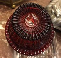 Brady Fitts: At one time this same piece, with handle, was on display in the Sandwich Glass Museum. Also reference Jane Shadel Spillman's book "American and European Pressed Glass" No 1525 and McKearin "American Glass" plate 99 bottom row GV-24 and base design plate 100-25 or 27.