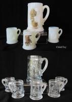 NOTE: The (aka) Wild Rose toy table set and punch set and the (aka) Monk Stein Set were made by the same unknown glass company around 1910.