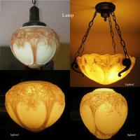 • NOTE: Roger Haworth: Northwood No. 516 shade. It's opaque white glass, but also painted white and decorated. I'm not sure whether this is the original finish or not. The catalog page is from a c.1913 Northwood Luna lighting catalog.