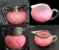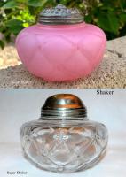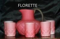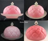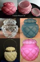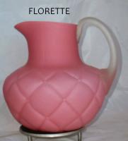 • Thomas Jiamachello: Consolidated used two names for this pattern depending on the finish it put on them. The pink satin (OMN "Mauve") ones…are shown in the 1895 catalog as "Florette", as are the ones in crystal. In other finishes, they called it "Quilt" in the catalog.