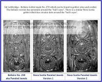 • NOTE: Sid Lethbridge - The aka Nova Scotia Paneled Jewels goblet has rings of round beads around the bullseyes instead of the raised pyramids present on the Bellaire Goblet version. Ref. Early Canadian Pattern Glass Vol. 1, pp 46-47.