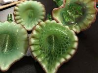 • NOTE: Gene Serbus 2020 - I would say this epergne is by Dugan. The small lilies (JIP) match the epergne lilies shown in the ad on page 135 of "Dugan/Diamond". It is labeled Fishnet in the reference.