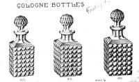 • NOTE: Sid Lethbridge 2020 - The catalogue page is from a Richards & Hartley catalogue but with a handwritten note that stated Factory L (formerly O'Hara). The motif matches the R&H No. 103 aka Thousand Eye. I would assign these to Richards & Hartley c1887 with the suggestion that US Glass moved production from Factory E to Factory L in the fall of 1892 when they centralized cologne production in the latter factory.