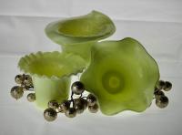• NORE: Page 85 of Fenton: The First 25 Years as vases dated to c1915. Not the same as Blackberry Spray as this has the ribbed band.