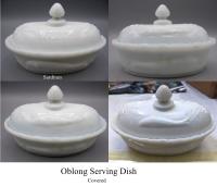 • NOTE: Sid Lethbridge 2021: Two sets: "Salmon" or "Sardine". The covered dishes at one time were speculated to have been made by Flaccus but the appearance of a matching bone dish points the set to being a Ball & Crowl (Wellsburg WV c 1896-?) product. Ball & Crowl were reported as making opal sardine and salmon dishes and bone dishes as well as banquet globes & other goods in 1897.