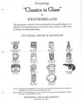 NOTE: Sid Lethbridge - several pages of crystal reproductions and reintroductions from early 1980s Westmoreland catalogues. In addition to their own lines from earlier years, there are several US Glass patterns and at least one Duncan, Miller pattern represented. These latter patterns may have been made with moulds acquired at the closing of US Glass. Westmoreland Glass Co. was located in Grapeville, PA.